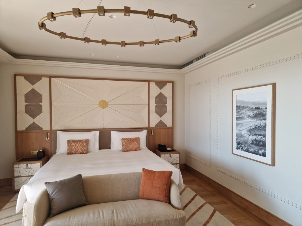 When it comes to accommodation, the choice is abundant. The main hotel houses elegant rooms and suites, their interiors inspired by the colours and textures of the surrounding landscape. Every space is designed to frame the rolling hills, the vineyards and golden sunsets.